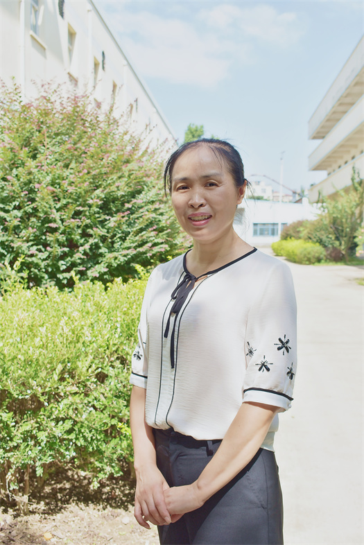 2019年的夏天,由于生产任务重,丁敏每天需要同时看两台牵经机。她在不停地来回查看机台运转的时候,不小心被地上的凸起物绊倒了,导致两颗门牙被磕掉。事情发生后,车间同事和公司领导到家中看望,张罗着请最好的医生给丁敏医治,还承诺报销全部治疗费用。大家的关心让丁敏十分感动,她只做了简单包扎,没去医院住院治疗。从来没请过假的丁敏,就这样在家坚持了大约两个星期,便返回到工作岗位。