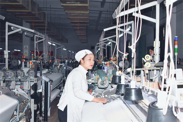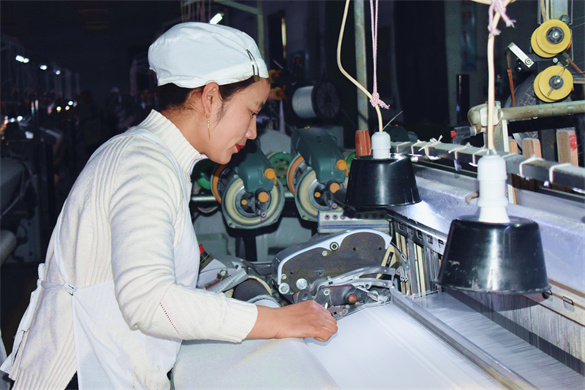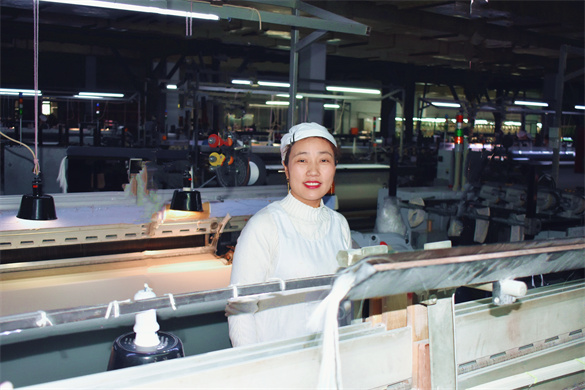 股份公司剑杆二车间工作。来之后,她发现公司环境优美、技术先进,不仅薪水高、待遇好,还提供食宿,立刻就喜欢上了这里。每天下班后,还能照顾家中的老人和孩子,她感到非常满意,就在心里暗下决心,一定要把织绸的技术学好,早日融入到这个集体中。