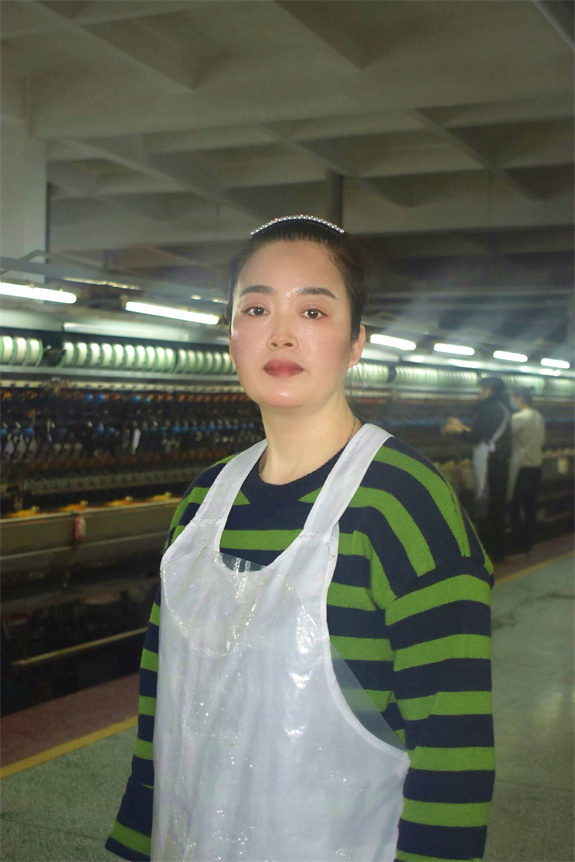 每次当我到机台中间车位时,正好和岳子荣面对面,透过机器的空隙就能看见她。有时明明看她在这边操作,一眨眼的功夫她又到另一边去了,我心想,难道她会“凌波微步”吗?可见岳子荣的操作有多快!虽然年龄大了,但岳子荣的操作水平依然不减当年!在她工作的这么多年中,每年年终评比都被评为“优秀员工”,每年的操作比赛都能获得“操作能手”的荣誉称号,她是缫丝挡车工中毫无争议的标杆,是我们学习的榜样!