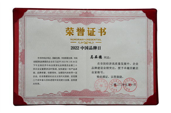 协会副会长、公司董事长马品德荣获品牌建设卓越贡献企业家称号!