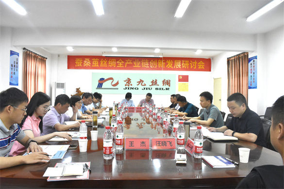 全产业链创新发展研讨会在公司二楼会议室召开。颍州区委常委、区人民政府笪前进副区长,颍州区政协副主席、区科技局姜永强局长,安徽农业大学生命科学学院徐家萍研究员、魏国清副教授、王磊副教授、钱岑副教授、刘世火博士,安徽省农业科学院蚕桑研究所专家刘明辉研究员、李冰副研究员、叶崇军副研究员、王杰博士,中国蓝颜gtv